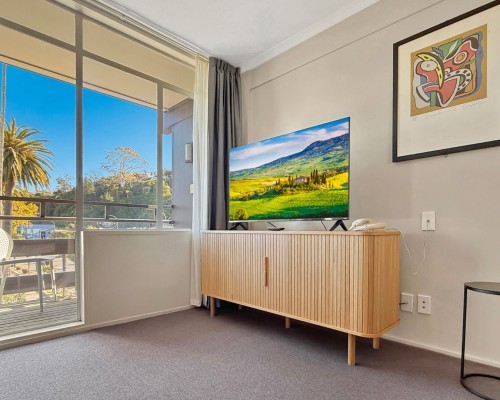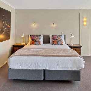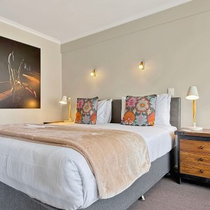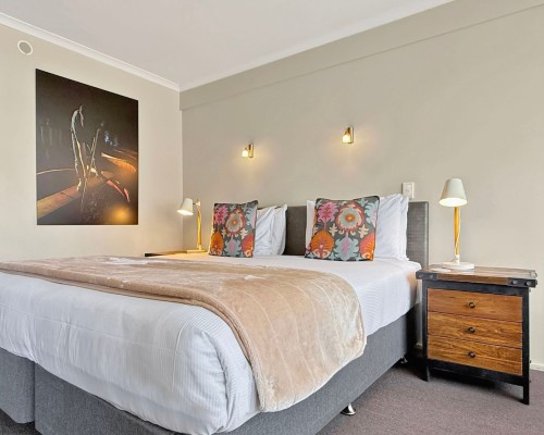 Enjoy an extra spacious Studio Room with luxurious king bed, comfortable seating, desk, ensuite bathroom with shower, and stunning local photographic artwork feature. These rooms also enjoy a balcony with a view over delightful Clive Square Gardens. This extra spacious studio is perfect for just a night or an extended stay for your next visit to Napier. Both car parking and secure bicycle storage are available at the hotel for no extra cost.